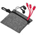 A pair of wired earbuds and a 3-in-1 charging cable are packaged together in a small, zippered pouch. The cable is suitable for all types of phones, and can charge multiple devices at the same time.